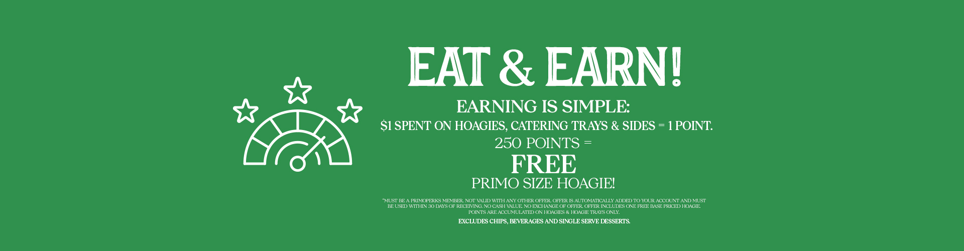 Join PrimoPerks to earn points and receive exclusive offers